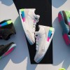 当初のモデルとはデザインが変更されたようで、ホワイトアッパーにジムレッドのパテントレザーが魅力的。